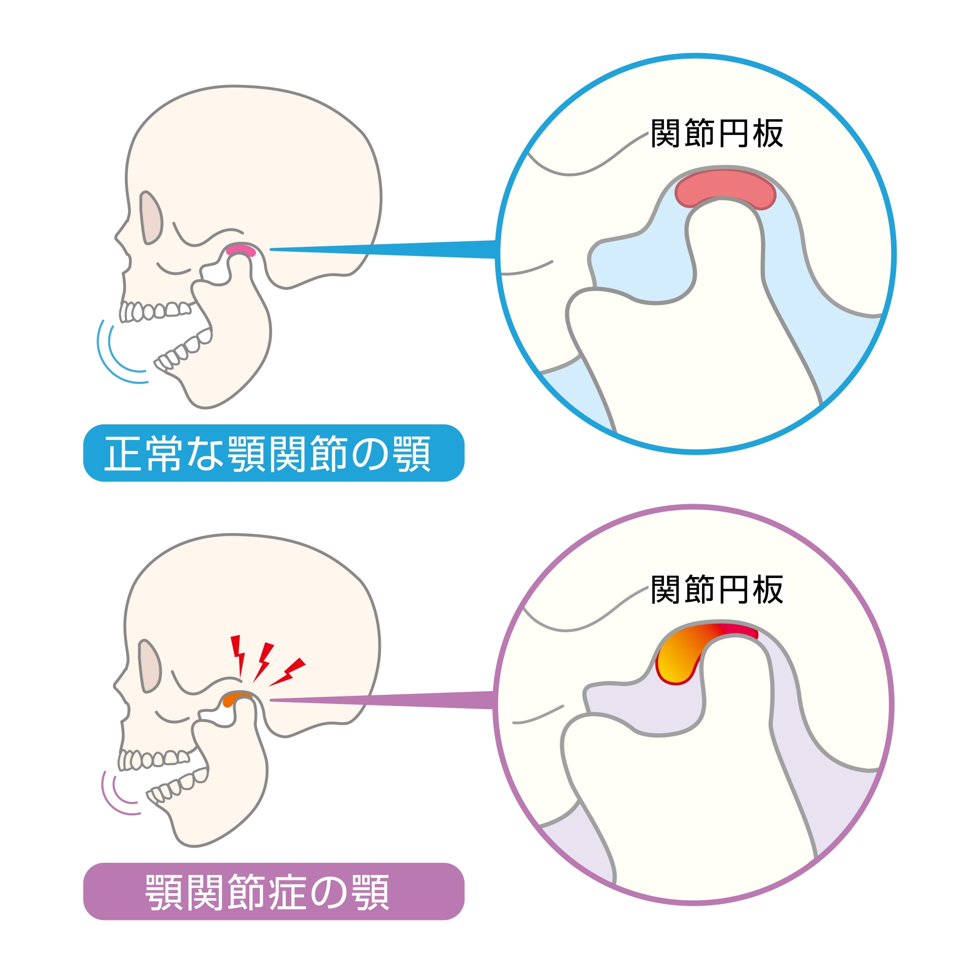 くいしばりに由来する病的変化は筋肉痛、顎関節の痛み、歯の破損、慢性の肩こり、腰痛など多くの症状があります
